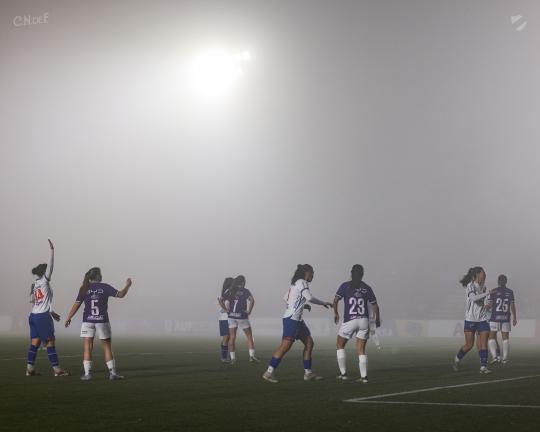 En un partido marcado por la niebla, las Tricolores vencieron a Defensor Sporting 3 a 1, con dos goles de Martha Figueredo y uno de Josefina Félix.