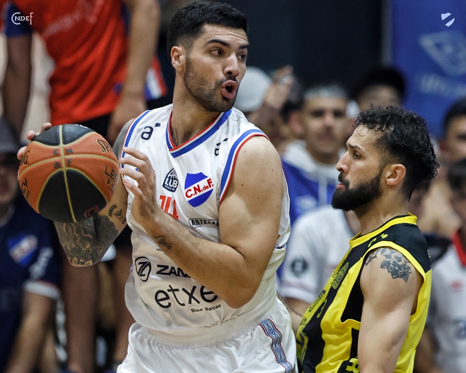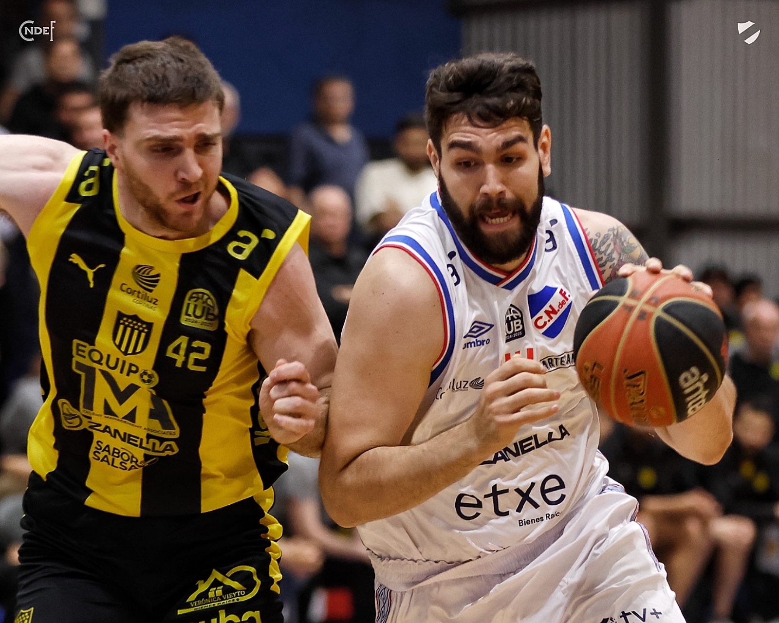 El trámite se hizo extremadamente parejo, con varios fouls y protestas, típico de partido clásico. En la segunda mitad del Cuarto hubo varios cambios de liderazgo, ya que se encendió James Feldeine desde fuera del perímetro y terminó siendo importante para cambiar el liderazgo. Sin embargo, luego de alternar varias veces, Nacional se fue abajo 40-42 al descanso largo.