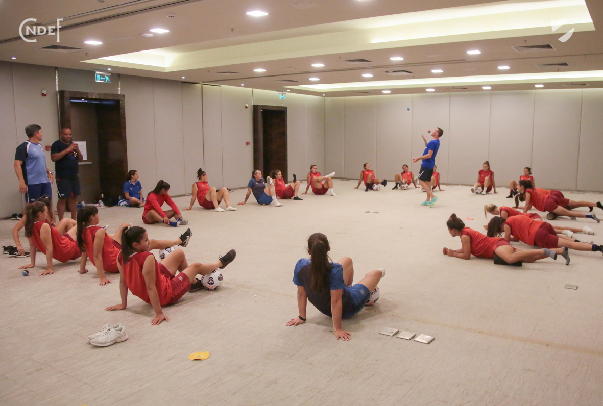 La jornada comenzó con una reactivación a cargo de Javier Noble, intentando recuperar al equipo, luego de intensos minutos jugados en el último partido.