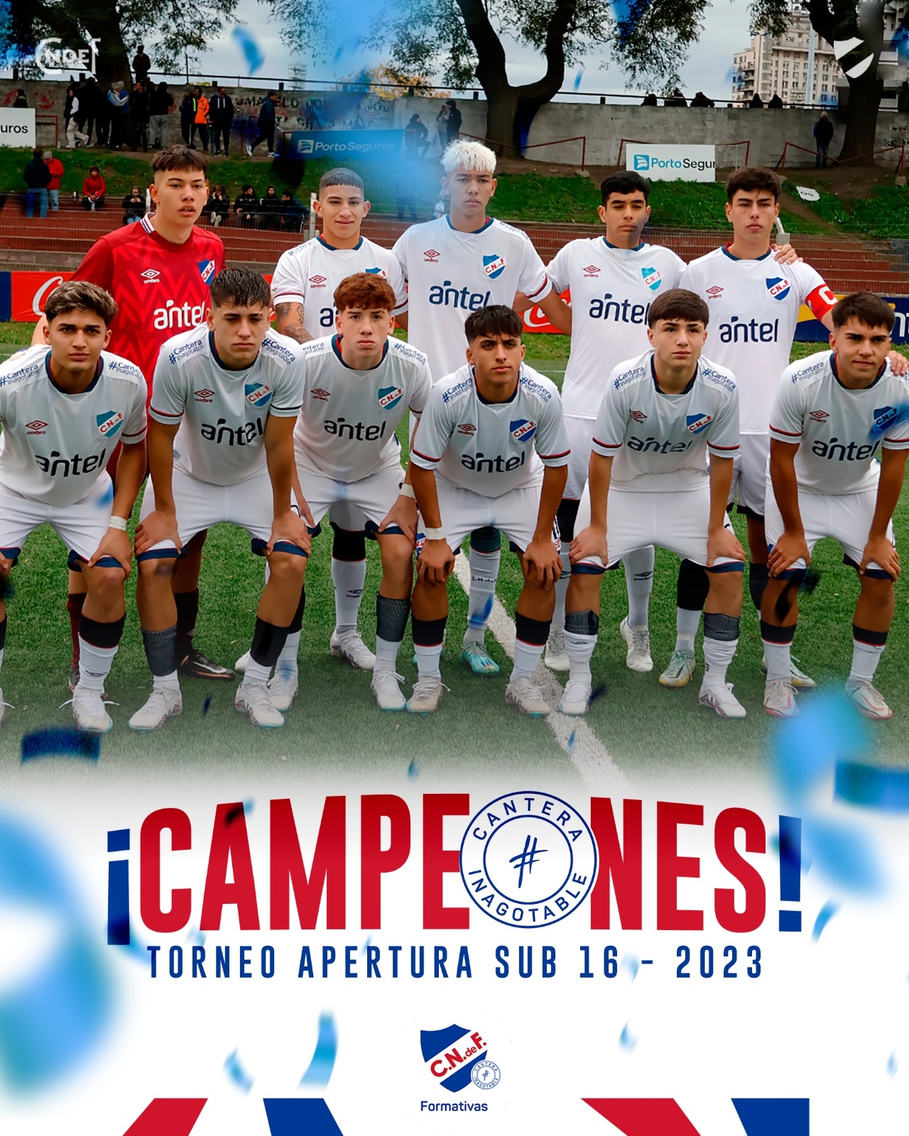 Hoy fue un día de festejo para la sub 16 de la #CanteraInagotable ya que tras el empate 1 a 1 ante el equipo darsenero por la fecha 19 se consagró justo campeón del Torneo Apertura, donde acumuló un total de 51pts por encima de Peñarol con 49pts y Defensor Sporting con 48pts.