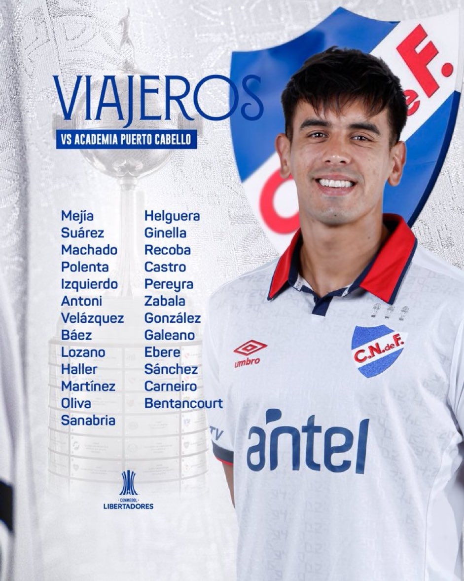 Este lunes, Nacional viajó en vuelo charter rumbo a Valencia, Venezuela, para afrontar este primer partido por Copa CONMEBOL Libertadores, y en la lista de viajeros se conocieron novedades respecto al partido frente a River Plate, como la presencia de Facundo Machado, Leandro Lozano, Fredy Martínez, Emiliano Velázquez, Thiago Helguera y Christian Oliva.