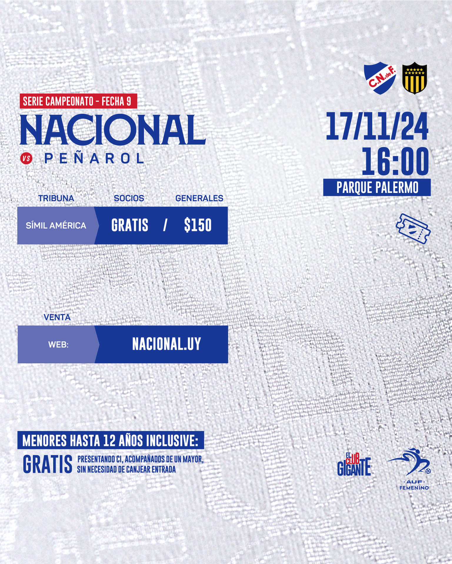 Las entradas están disponibles en la ticketera de la web nacional.uy, siendo canje gratuito para socios, y el valor de la misma para público en general es de $150.