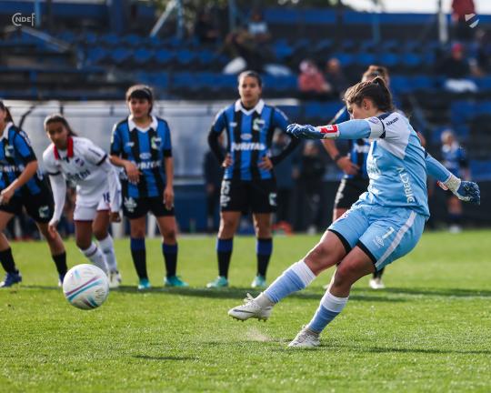 El primer gol llegó tras un tiro fuerte de Oxandabarat que no logra contener la arquera negriazul y el rebote es capturado por la centroforward colombiana marcando a los 5 del segundo tiempo.