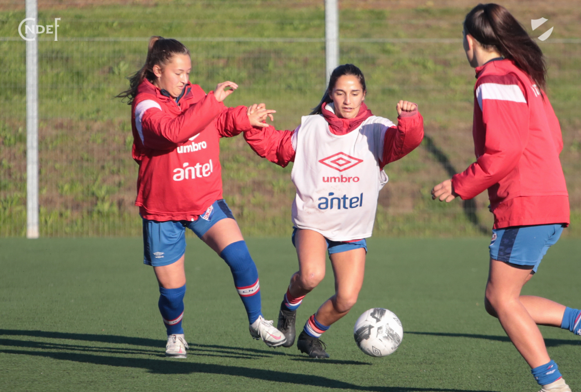 Nacional entrenó este miércoles en conjunto, Primera con Sub19, en la cancha de césped sintético Luis Suárez, con activación general y rondos de presión dirigida por sectores.